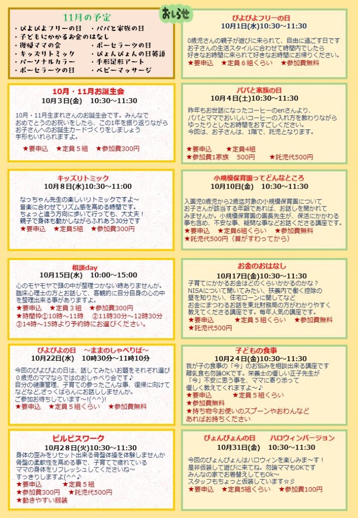 子育て支援センターみんなの家@ふくしま 2025年10月の予定表ができました!