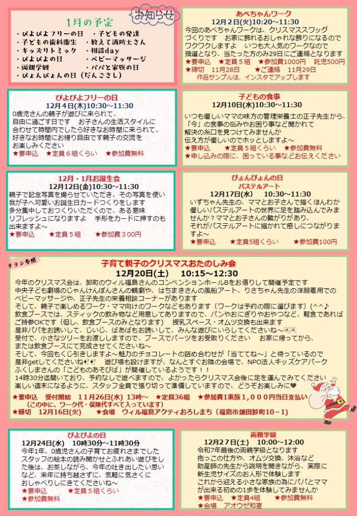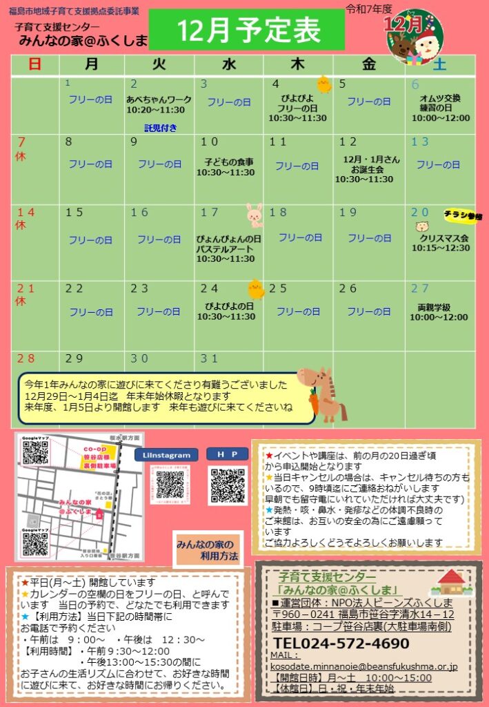 子育て支援センターみんなの家@ふくしま 2025年12月の予定表ができました!
